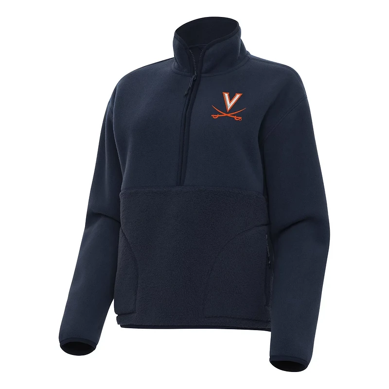 Show your Virginia Cavaliers pride with this Virginia Cavaliers Figure Half-Zip Sweatshirt In addition to a logo on the left chest it features a unique design with microfleece on the top and super-soft sherpa on the bottom providing both luxurious comfort and warmth This midweight pullover is perfect for moderate temperatures keeping you warm and comfortable whether you're at a Virginia Cavaliers game or running errands around town