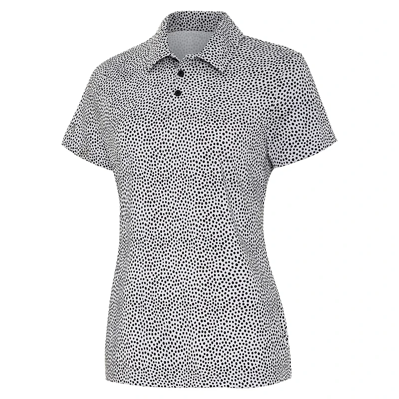 Bring playful style to your game with the Antigua Women's Iconic Polo, featuring a fun polka dot print and a sleek poly sheen finish. With its flexible stretch fabric and classic three-button design, this polo combines comfort and sophistication, making it perfect for the course or casual outings. A versatile piece that adds both charm and performance to your wardrobe.