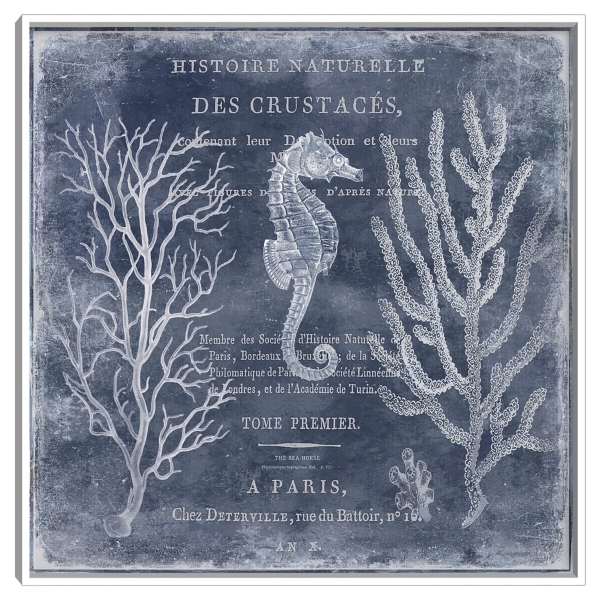 This vintage coastal print is the perfect decoration choice for your beachy or seaside-themed home. The Antique Deep Blue II Framed Art Print will bring the ocean waves to your wall. Art measures 20L x 1.5W x 20H in. Giclee printed on stretched, polycotton blend canvas Frame crafted of wood White frame finish Features a seahorse subject French text elements Hues of blue and white Artist: Deborah Devellier Weight: 5 lbs. Hangs from back-mounted hardware; sawtooth hangers included Care: Dust with a soft, dry cloth. This item is available at Kirklands.com only, not available in stores. Please note: this item cannot be shipped to APO/FPO addresses. WARNING: Cancer and Reproductive Harm - For more information go to www.P65Warnings.ca.gov .