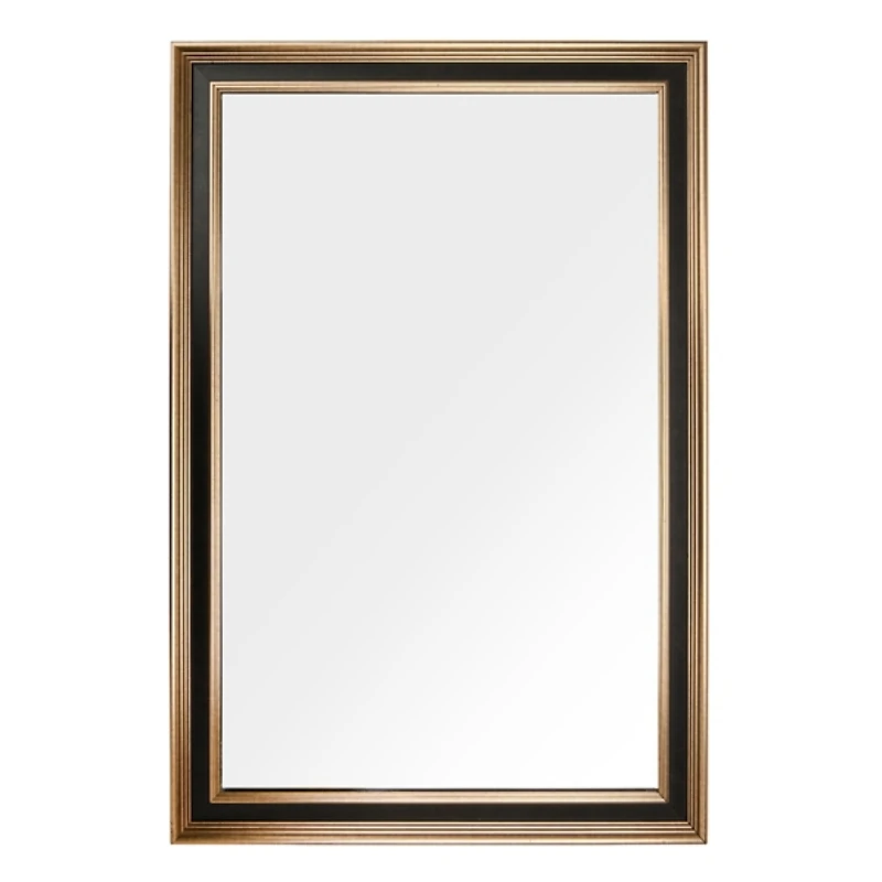Our Antique Gold and Black Framed Mirror reflects modern yet timeless style with its two tone finish and classic silhouette. Perfect for an entryway or gathering room, this wall mirror fits especially well with a traditional home aesthetic. Overall dimensions Width: 23.7 in. Depth: 1.4 in. Height: 35.5 in. Crafted of mirror and polystyrene Antique gold and black finish Rectangular shape Weight: 11 lbs. Hangs from back-mounted hardware Care: Dust with a soft, dry cloth. To clean mirror, spray a small amount of glass cleaner onto a lint-free cloth and wipe clean. Contact your local Kirkland's store for availability. Quantities and selection may vary by location. WARNING: Cancer and Reproductive Harm - For more information go to www.P65Warnings.ca.gov .