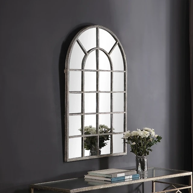 Glitzhome® 33" Black Arched Windowpane Wall Mirror