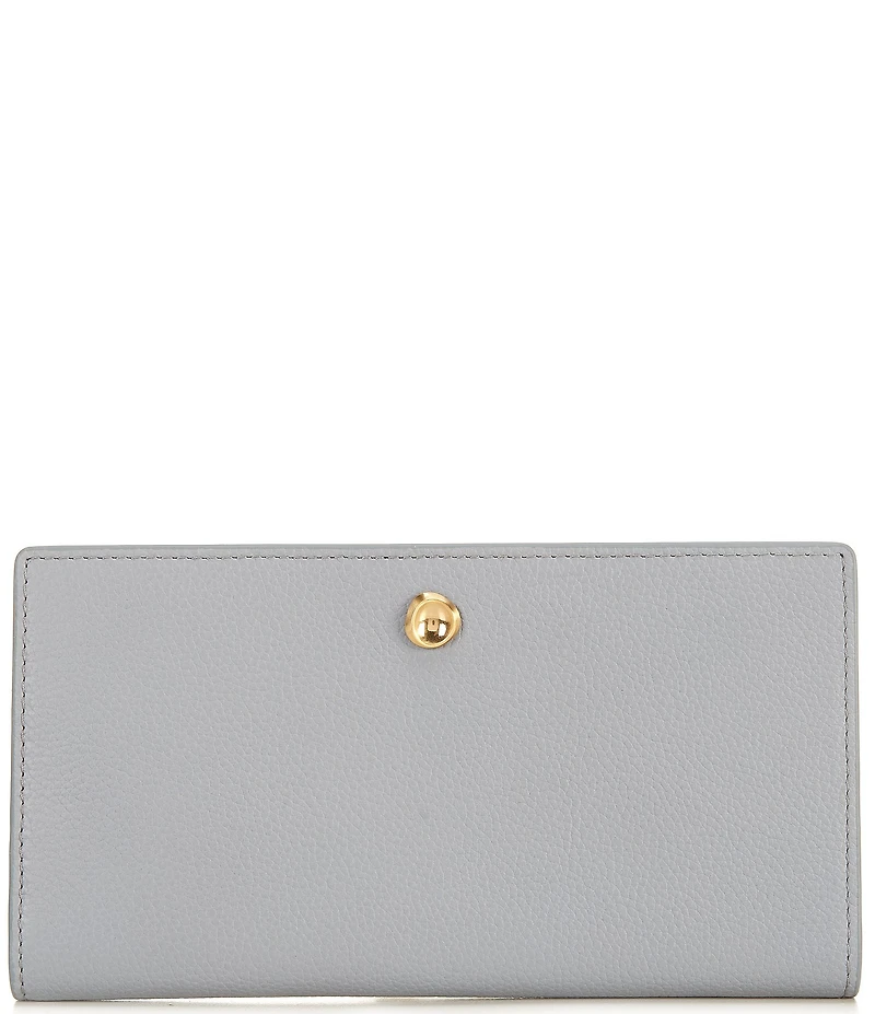 From Antonio Melani, the Long East West Bifold Wallet features: Leather Pin snap closure Antique gold hardware finish Ten credit card slots Interior billfold Dillard's exclusive Approx. 7.5'' x 4'' Imported.
