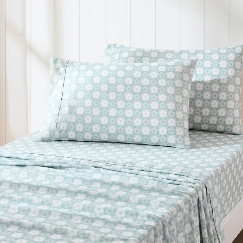 Aqua Blue Checkered Daisy 4-pc. Twin XL Sheet Set in Chattanooga, TN