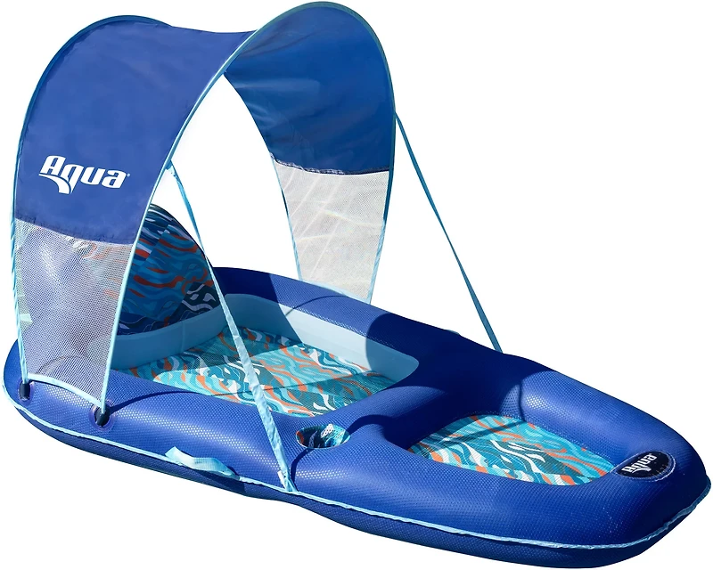 Enjoy the water in ultimate comfort with the Aqua Luxury Lounge with Canopy. Its oversize tubing offers ample buoyancy and is covered with ultrasoft Ultra-Lux™ fabric. The headrest supports your neck, while the removable canopy offers shade against the sun. Cup holders keep your drinks convenient. The Duolock® Inflation System enables effortless setup and deflation.
