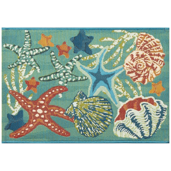 The magic of the sea comes to life in this Aqua Marine Life Indoor/Outdoor Accent Rug. The colorful ocean treasures will bring a bright, summer charm to your space! Rug measures 2 ft. 5 in in length x 3 ft. 11 in. in height Crafted of polypropylene and polyester Starfish and seashell pattern Hues of blue, red, green, white, and yellow Non-shedding Fade resistant Rug pad not included Safe for indoor and outdoor use Care: Machine wash cold on gentle cycle with mild detergent. Do not bleach. Lay flat to dry. Vacuum regularly. Do not use a hard bristle brush. This item is available at Kirklands.com only, not available in stores. Please note: this item cannot be shipped to APO/FPO addresses.