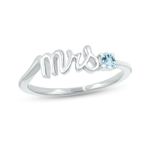 Aquamarine "Mrs." Ring 10K White Gold
