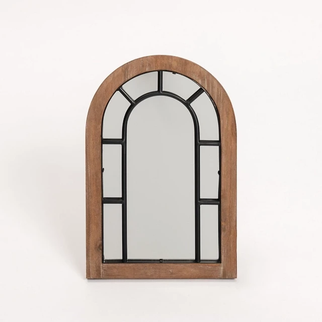 Arched Wood and Metal Overlay Tabletop Mirror