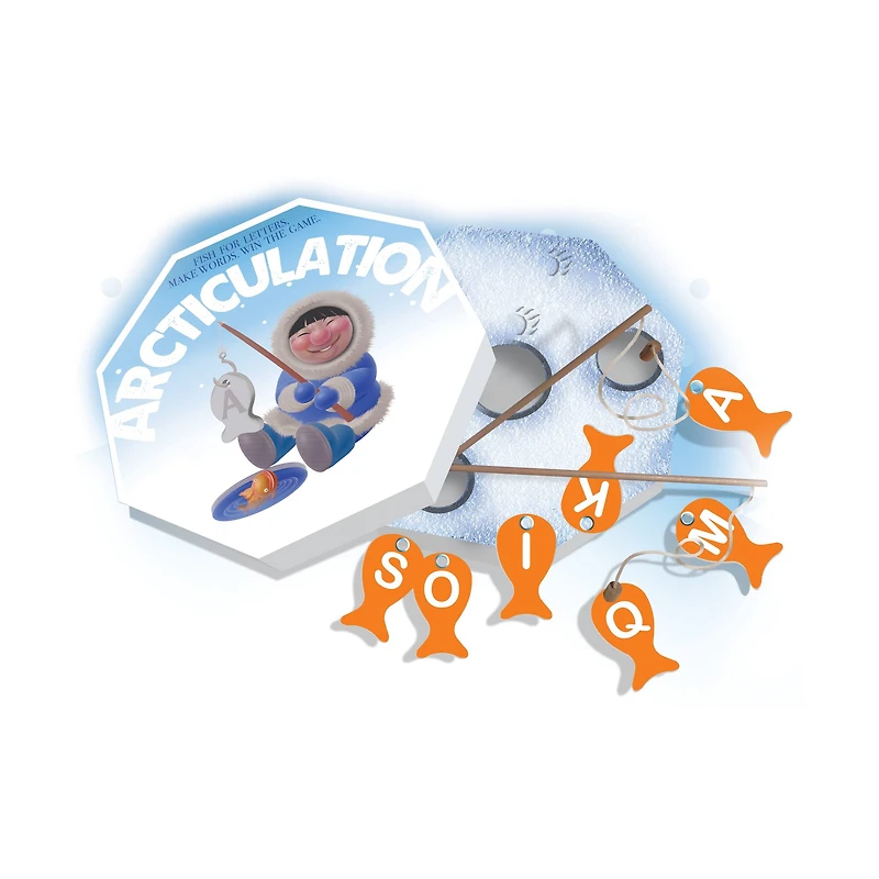 Fish for letters. Make words. Win the game. Everybody uses a fishing rod at the same time to frantically fish out as many letters as possible until the ice-holes are fished out. You then have two minutes to use your pile of letters to construct as many words as possible. You cannot reuse any letter in another word. The player with the most words wins the game.Includes 4 fishing rods104 lettered fishFor 2-4 playersMade in ChinaBrand new condition in original packagingWipe clean with dry or damp clothFor ages 5 and up