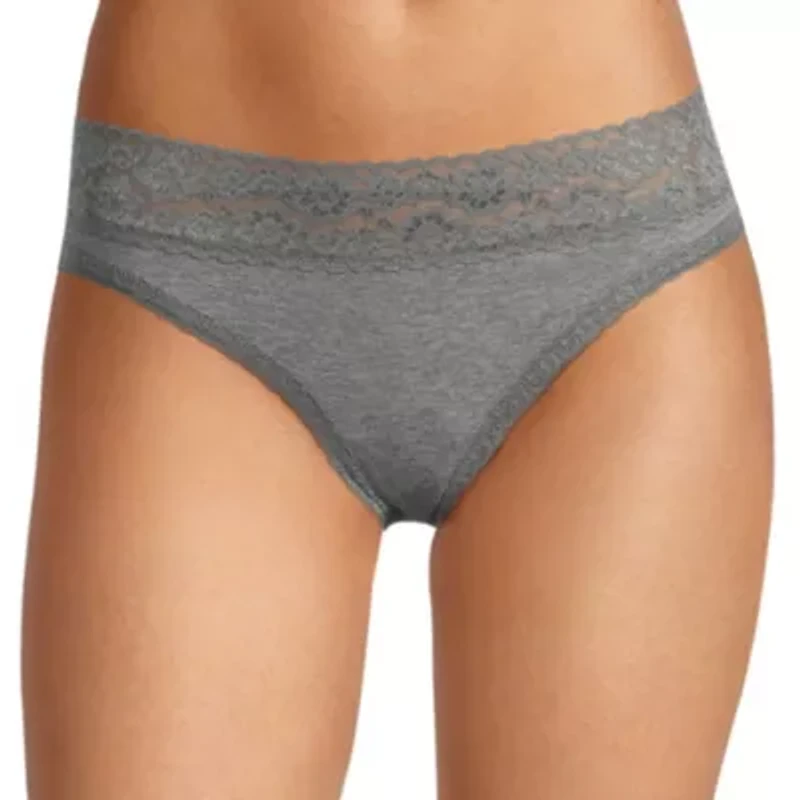This Arizona Body lace thong panty will be one of your on-trend go-tos to wear under everything. Made from an organic stretch cotton-jersey, these panties have a lace trim and delicate back coverage.