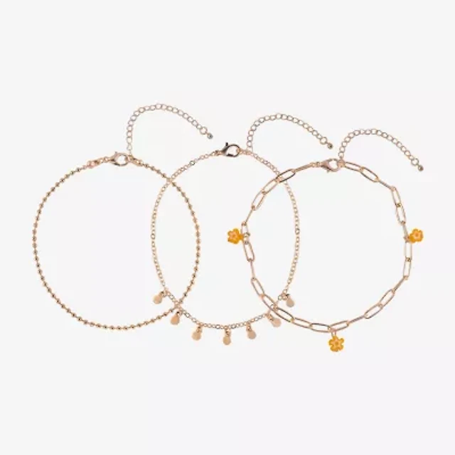 Arizona Gold Tone Womens 9 Inch Paperclip Flower Ankle Bracelet