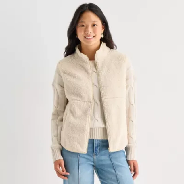 Arizona Womens Juniors Long Sleeve Fleece Zipper Hoodie