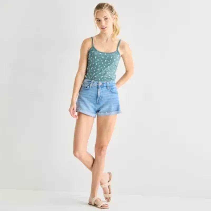 A summer and sunny vacation essential, these Arizona Jean Co. juniors and women’s denim shorts are just right for everyday wear. Made from soft, recycled cotton with a bit of stretch, they have a button-zip fly, 5-pocket tailoring, and rolled cuffs. Wear them with everything from graphic tees to blouses.