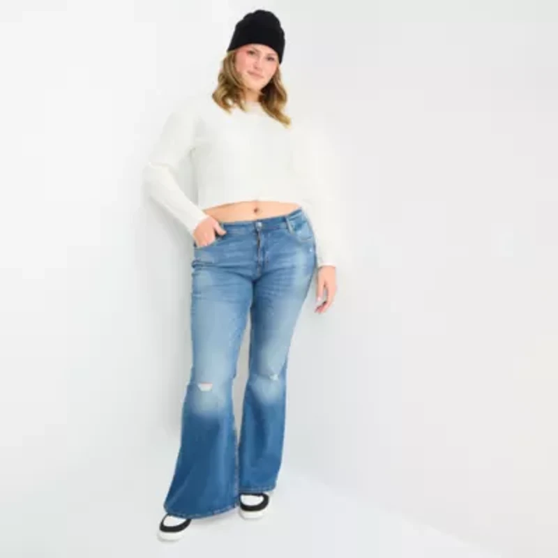 Arizona Womens Juniors Plus Low Rise Flare Leg Jean