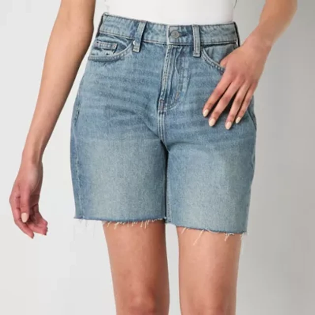 Arizona Curvy Womens High Rise Juniors Denim Short