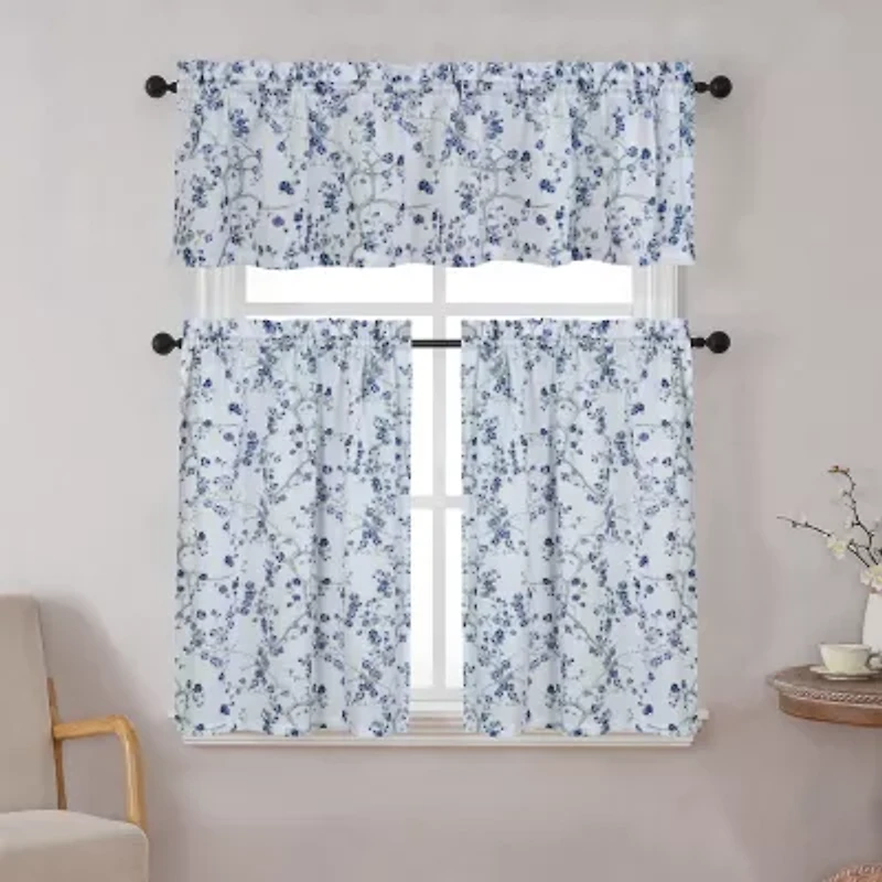 Add a touch of elegance to your kitchen or dining area with the Arlo Printed Floral Tier and Valance Set. This charming window treatment features a delicate floral pattern that brings a touch of nature indoors. Crafted from 100% polyester, it offers durability and easy maintenance. The set includes two tier panels and a matching valance, each designed with a 1.5-inch rod pocket for easy hanging. The light-filtering fabric provides privacy while allowing natural light to brighten your room.
