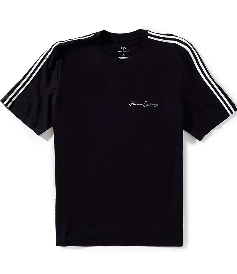 From Armani Exchange, this t-shirt features: Regular fit Crewneck collar Short sleeves with stripe detail Signature logo on the left side of chest Pullover construction Cotton Machine wash/tumble dry Imported.
