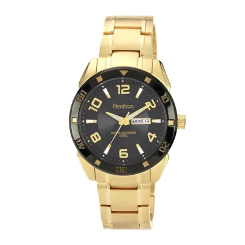 Armitron® Mens Gold-Tone Black Dial Watch
