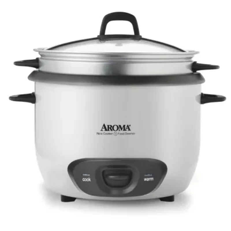 Enjoy easy home cooking with the Aroma 6-Cup (Cooked) Pot Style Rice Cooker and Food Steamer. Restaurant-quality rice. Healthy steamed meals. Delicious one-pot dishes. Prepare all this and more at the flip of a switch! Aroma takes the "cook" out of home cooking - turning kitchen time into your time! Help the kids with homework; get creative at play time or pick up that novel you've been waiting to dive into. All while delivering hot; hearty and healthy meals the entire family will love.This convenient cooker's compact capacity perfectly cooks 2 to 6 cups of any variety of rice. Once the rice has finished; it will automatically switch to Keep-Warm so there's no need for monitoring or stirring. The Steam Tray allows for healthy steaming of meats and vegetables; even as rice cooks below. It's also perfect for oatmeal; chili; jambalaya; soups and so much more! And when the cooking is done; the inner cooking pot and all accessories remove for easy cleanup in the dishwasher.Steam Tray; Rice Measuring Cup and Serving Spatula included.