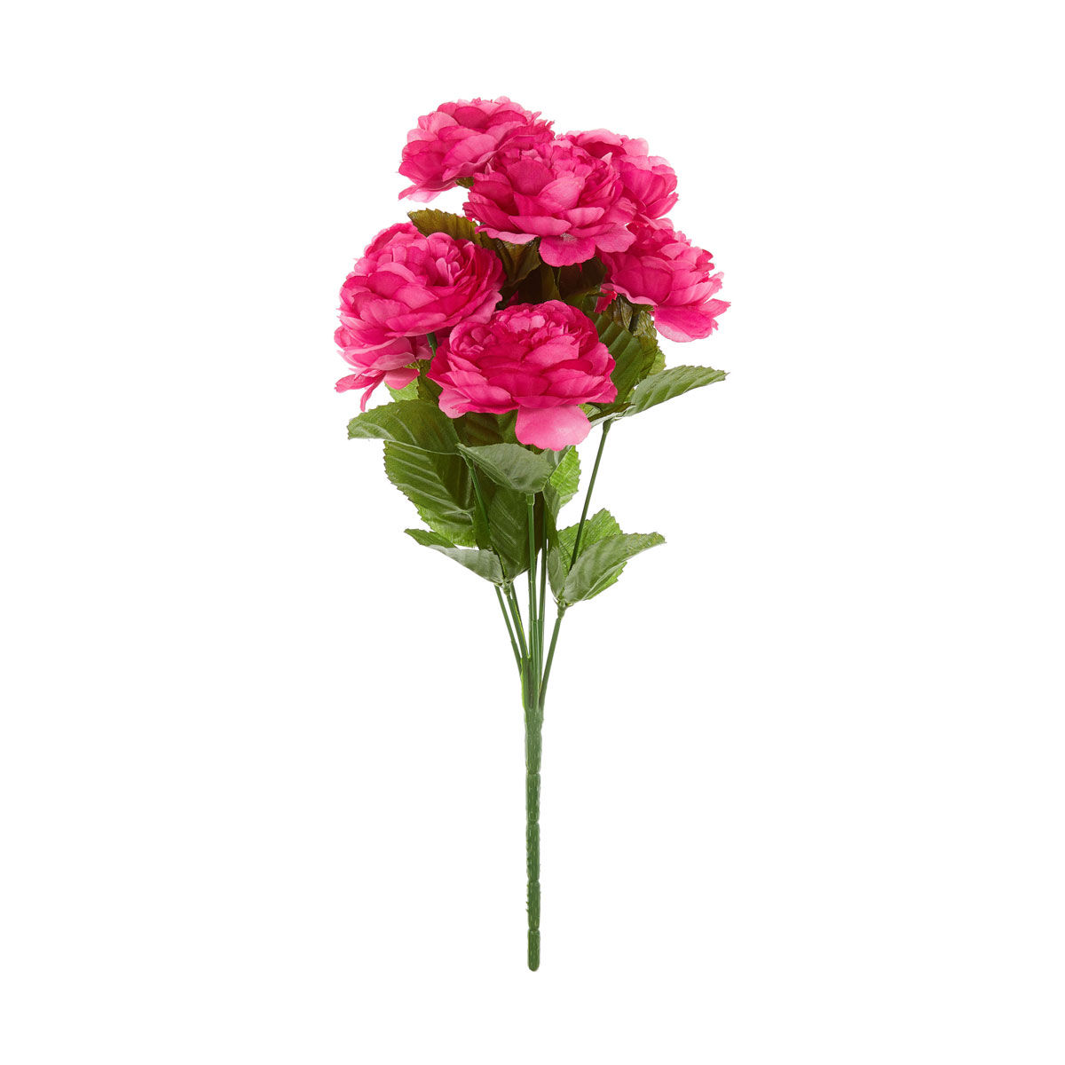 Add a pop of vibrant pink color to your decorations with this Artificial Carnation Pink Roses Bush. The bush features pink roses and green leaves that will complement well with other equally stunning accents like balloons, soft toys, and more. The pointed stem is easy to put in various floral arrangements or as a standalone piece in a flower vase. This décor is lightweight and hassle-free to maintain.