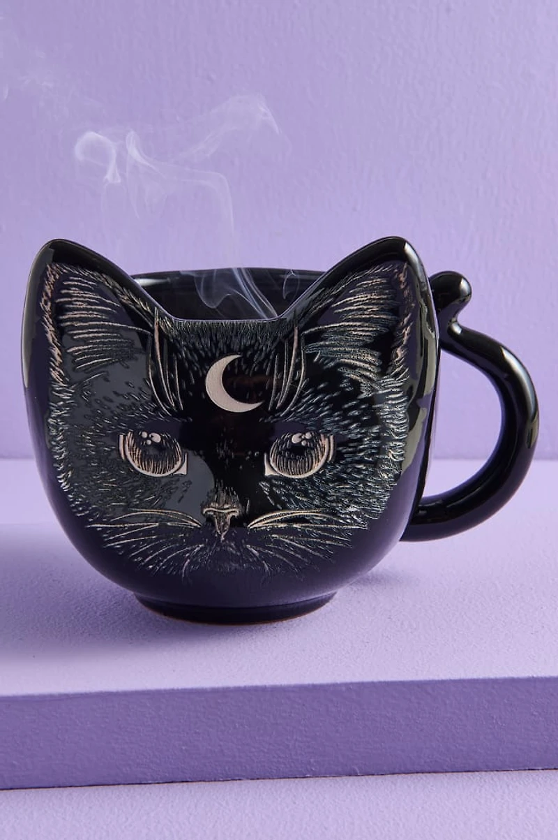 Curl up with your kitty and a hot cup of tea with this adorable black moon cat mug, a must-have for anyone who loves mysticism and felines! This handcrafted ceramic mug is shaped like a cat’s head and features a hand-etched moon cat design, complete with a carved crescent moon on its forehead. Carefully created with time, love, and energy by skilled artisans, each piece carries its own soulful charm and individuality. With its glossy black glaze and intricate detailing, this mug brings celestial energy and cozy vibes to your boho drinkware collection or witchy kitchen decor. Every mug is truly one-of-a-kind, showcasing subtle variations in carving, glaze, and finish that make it as unique as the cat it was inspired by. Ideal for your morning brew, moonlit tea, or a cozy cup of cocoa under the stars, this artisan-made mug blends everyday durability with a touch of enchanting beauty. Its sturdy shape and smooth handle make it super functional, turning every sip into a small ritual of comfort and intention. A perfect gift for cat lovers, moon gazers, and modern mystics, this black moon cat mug is a handcrafted piece of art meant to be cherished for years to come.