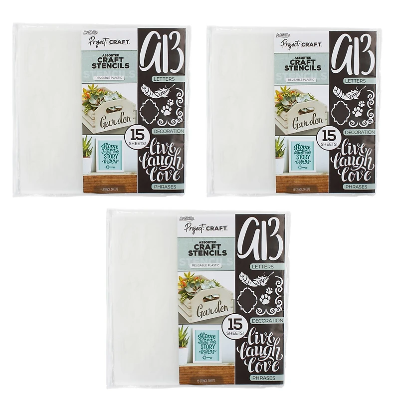 ArtSkills® Plastic Letter Stencil Sets with Designs, Numbers & Phrases, 3ct.