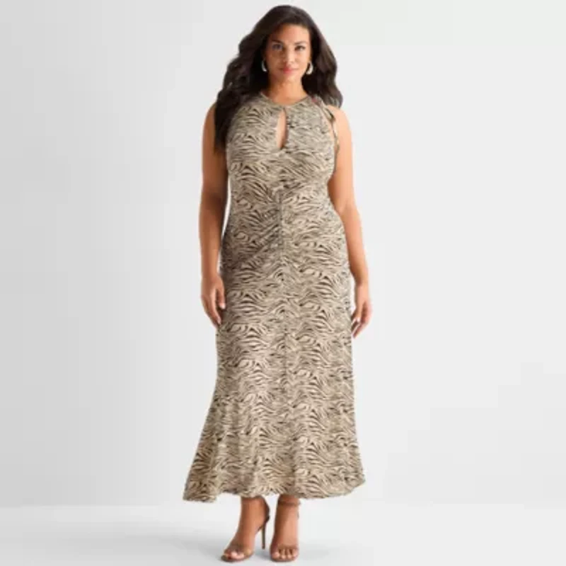 Ashley Graham Womens Plus Sleeveless Animal Maxi Dress in Chattanooga, TN