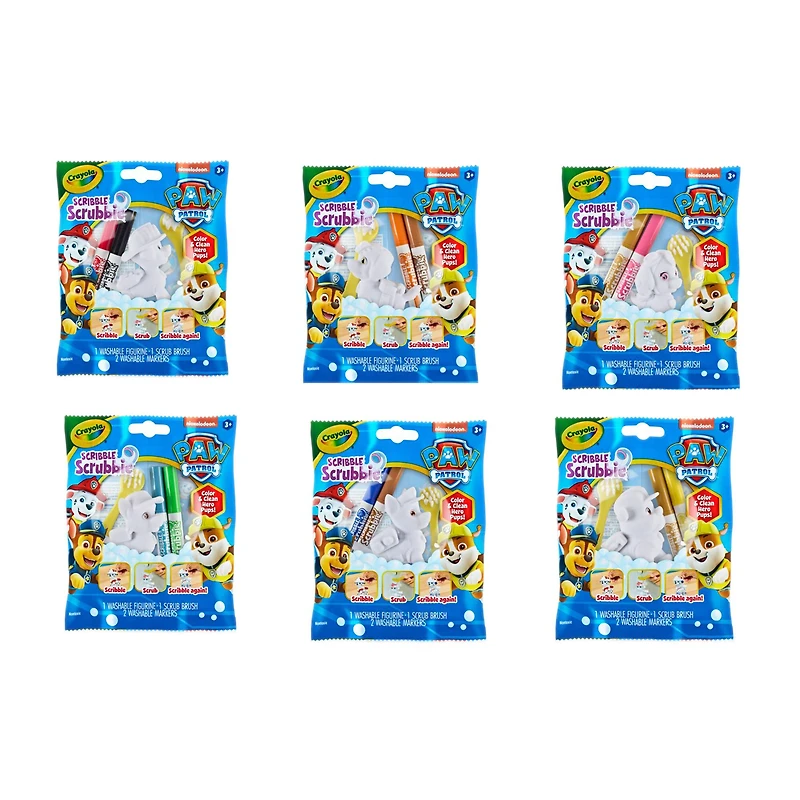This item is assorted. Style/color will vary and is selected at random.Embark on a mini, mighty and marvelously fun journey with the Crayola Scribble Scrubbie pets Paw Patrol set! This paw-sitively fantastic kit comes with one adorable Paw Patrol Scribble Scrubbie pet, two vibrant Scribble Scrubbie washable markers and one scrub brush. Little rescuers can color and personalize their pet, then give them a scrub down and start the creative fun all over again! Both of the washable markers magically rinse from skin and most fabrics for stress-free creativity. But the fun doesn't stop there - expand your rescue team with additional Scribble Scrubbie pets, each one eager to join your colorful missions!Details:Available in assorted PAW Patrol styles5" x 1.5" x 6" package size1 Scribble Scrubbie kit (style will vary)Collect all 6 pupsNontoxicFor ages 3 and upContents:2 washable markers1 washable figurine1 scrub brush
