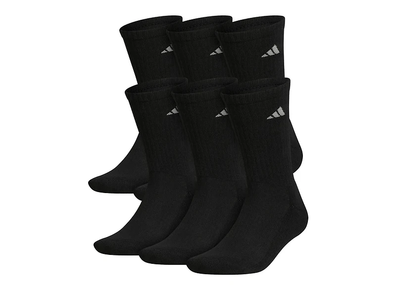 Stay comfortable all day long in the Athletic Cushioned crew socks from adidas. Moisture-wicking yarn keeps feet dry from sweat while the cushioned footbed and arch compression secures the foot and offers extra support.