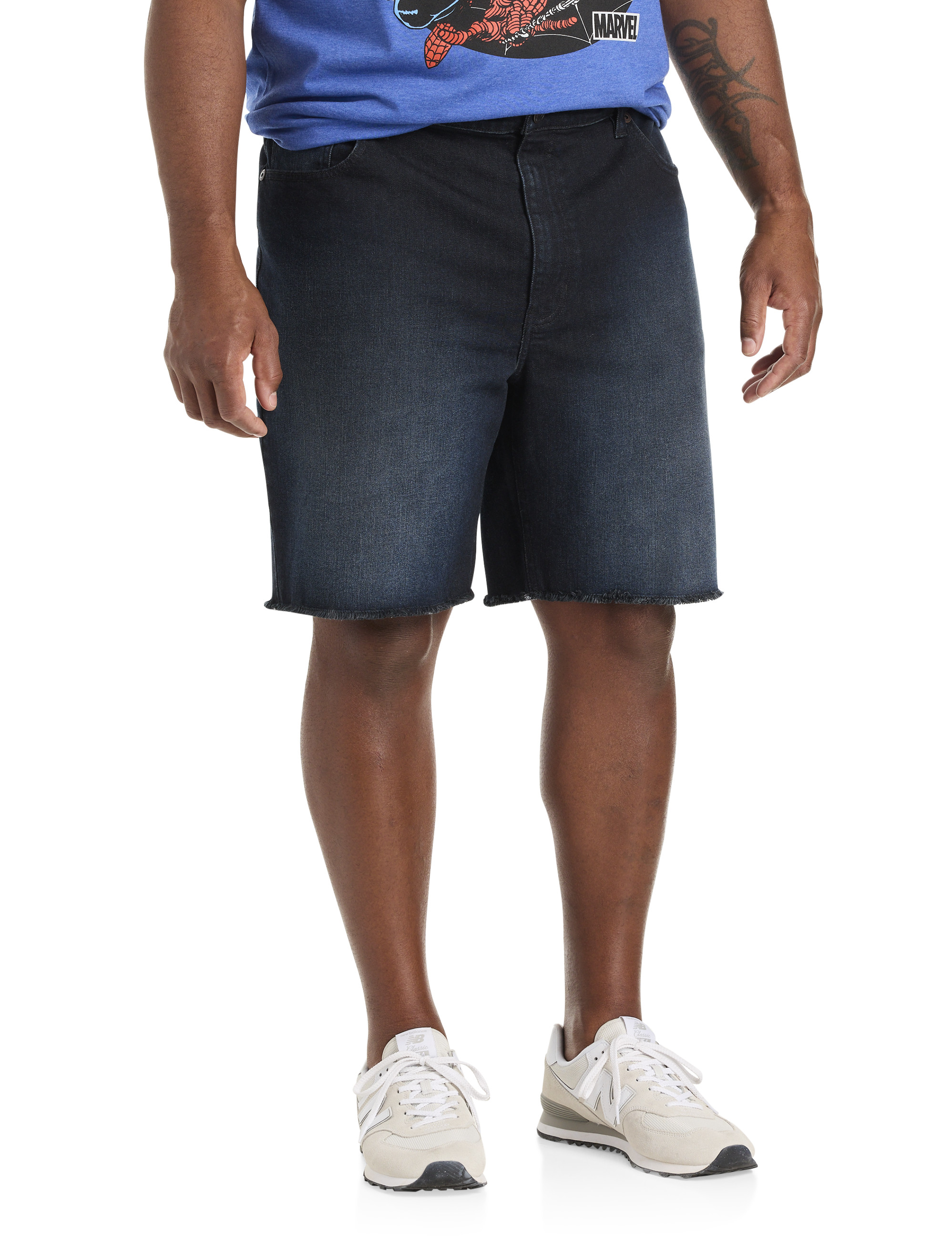 These stylish jean shorts are crafted in a cotton and eco-friendly recycled polyester blend to be comfortable and easy to wear. Designed right here at DXL in an exclusive dark wash, they're made with precise proportions and a flattering fit for Big and Tall guys. The Athletic Fit style sits below the waist at the front and is fuller through the hips and thighs, allowing for the freedom to move without restriction. Plus, they easily pair with everything from graphic tees to polos and more.