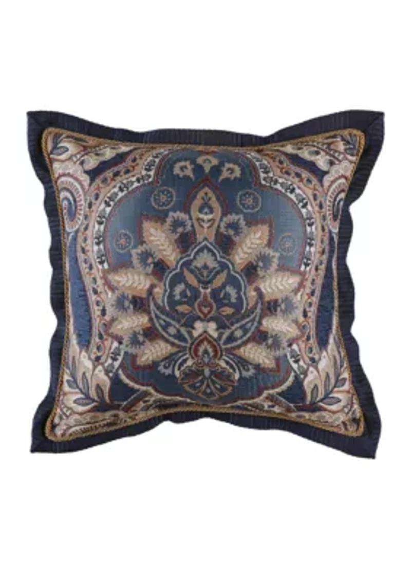 The Aurelio Square Pillow features the damask jacquard with a ribbed fabric flange while being trimmed in a small cord and reversing to the foulard jacquard fabric for added flair. 18-in. x 18-in. Material & Care Polyester Spot clean only