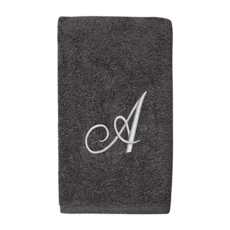 Add a personal touch to your bathroom decor with the Avanti monogram bath towel featuring an embroidered script silver letter over an incredibly soft granite towel. Matching hand and fingertip towels also available. Choose from 26 letter.