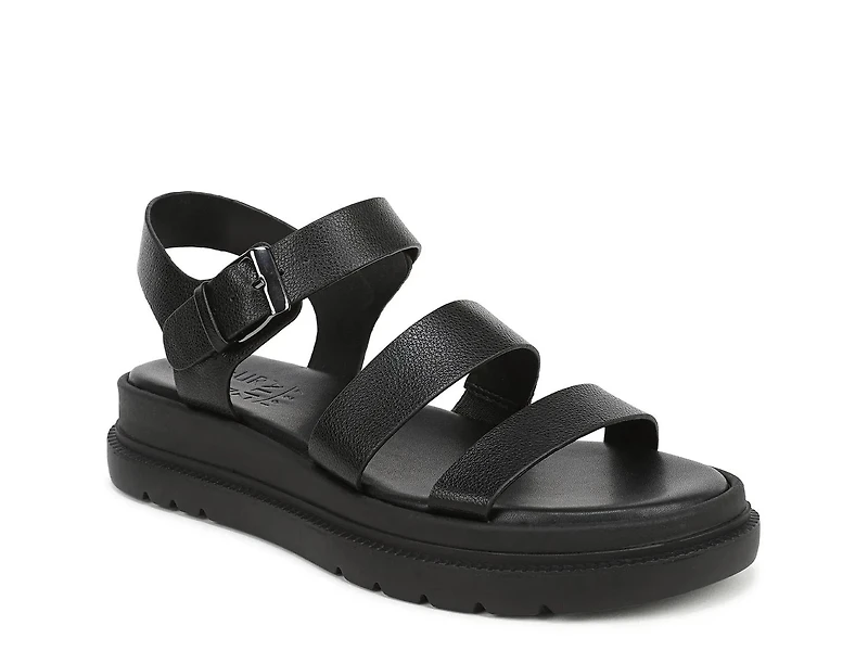 The Avenue sandal by Naturalizer combines sleek proportions with a bold lift, offering a sporty platform that stands out while feeling surprisingly light on your feet. Designed with an adjustable buckle strap and a padded footbed, this sandal delivers extra cushioning and flexible support that keeps you comfortable from day to night.
