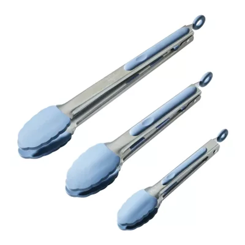 Pinch with precision and get a grip on all kinds of recipes with this set of versatile locking kitchen tongs from Ayesha curry. Featuring tongs in three different sizes, this utensil set is ideal for cooking on the stovetop, turning roasts and veggies in the oven, or even as a triple-play of grilling tongs to use with the barbecue. These made-to-last tongs are crafted from super-tough stainless steel and feature silicone grips and tips that are ideal for use on nonstick cookware and are heat safe to 500°f. cooking tongs lock closed for clutter-free storage in the utensil drawer or in Ayesha’s tool crock. Dishwasher safe for quick cleanup.