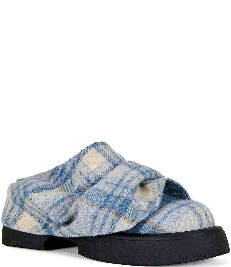 Azalea Wang Semyon Plaid Scrunched Overlay Platform Loafer Mules