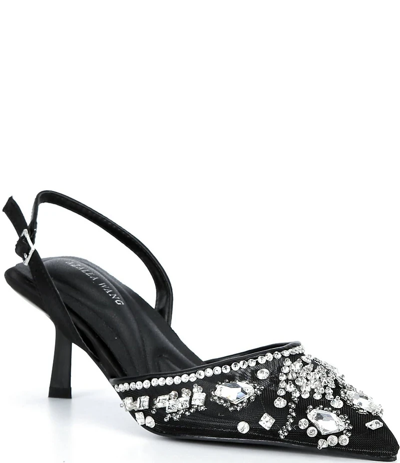 Azalea Wang Valeriy Mesh Jewel Embellished Dress Slingback Pumps