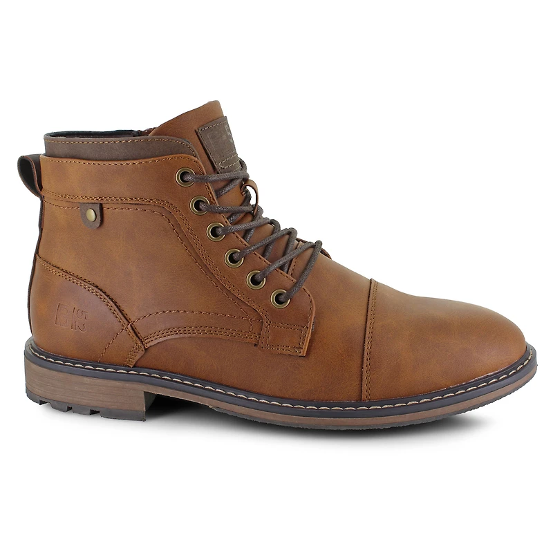 The B52 by Bullboxer Beta is ready to give your casual look a refresh. The cap-toe boot design features a synthetic leather upper that pairs well with jeans and khakis, making it perfect for nights out or days at the office. The lace-up front closure and a cushioned insole provide long-lasting comfort and a comfortable fit. Keep yourself grounded through any event with a durable synthetic outsole that provides reliable traction on multiple surfaces.