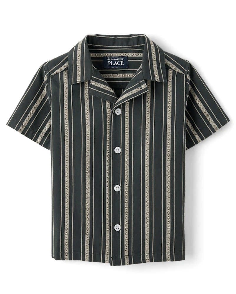 Baby And Toddler Boys Embroidered Textured Button Up Shirt