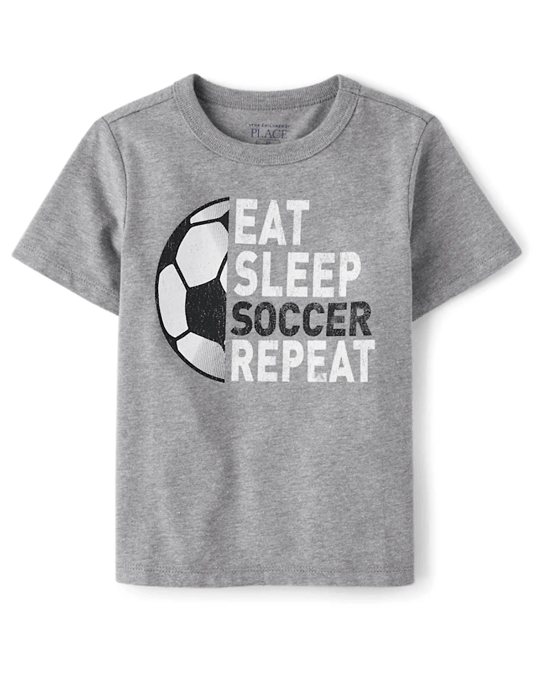 • FEATURES: 'Eat Sleep Soccer Repeat' with soccer ball graphic design, tagless label