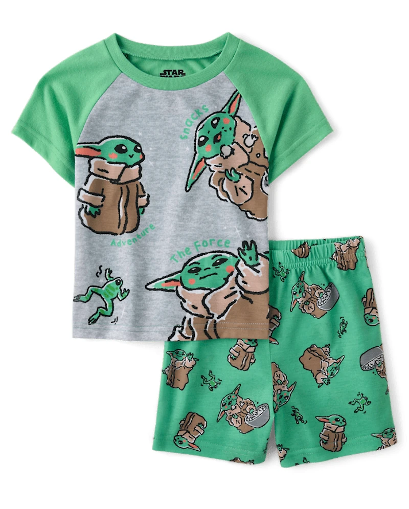 • PAJAMA SHORTS: Pull-on elasticized waistband, The Mandalorian print