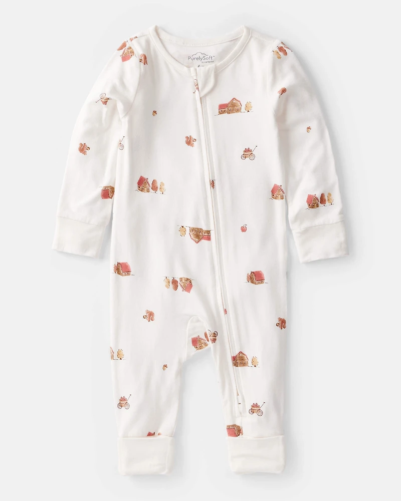 Baby Barn Print PurelySoft Long-Sleeve 2-Way Zip Sleep & Play Pajamas - White