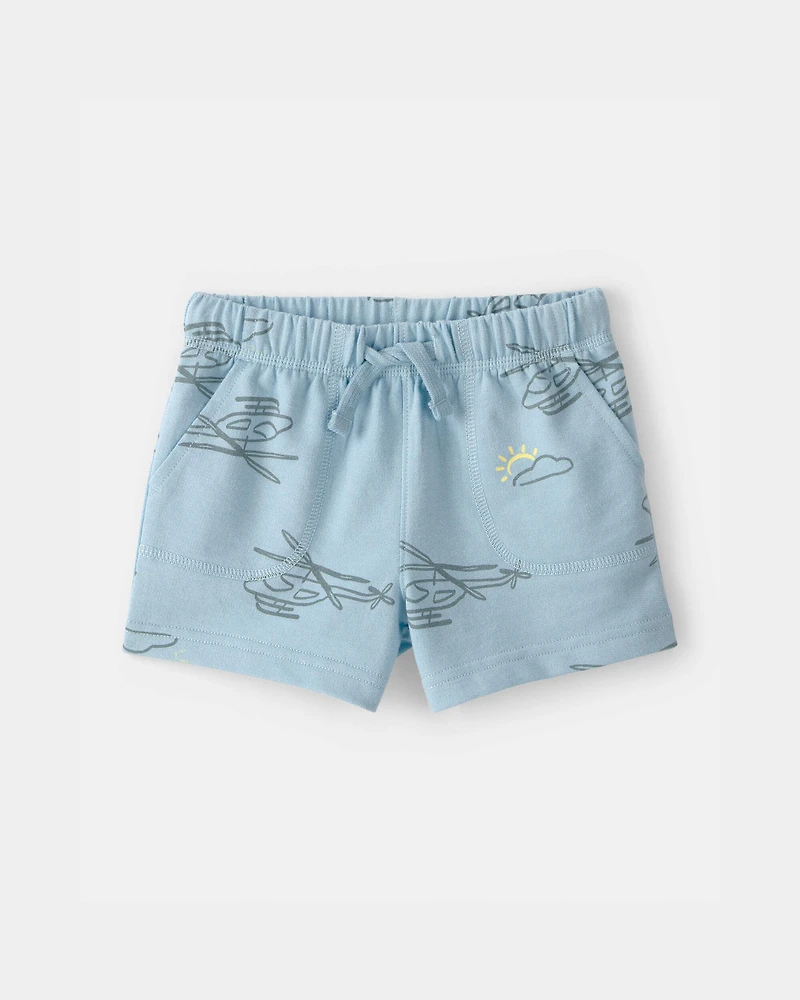 Get ready for adventure with the Baby Boy Helicopter French Terry Shorts in blue. Made from soft French terry, these shorts offer ultimate comfort for your little one. The breathable fabric keeps them cool on warm days, while the elastic waistband ensures easy dressing. Parents will appreciate the playful helicopter print, perfect for sparking imagination during playtime. These casual fashion shorts are versatile enough for a day at the park or lounging at home. Trust in the quality that has made Carter's a go-to choice for baby apparel. Your little explorer deserves the best.