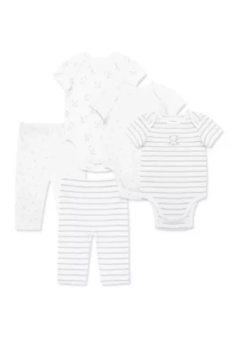 Baby Boys Elephants 5-Piece Bodysuit and Pants Set