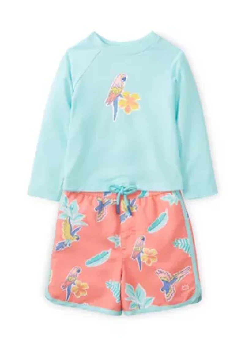 Keep him protected and comfortable with this adorable swimwear set from Crown & Ivy™. This set includes a top and matching board shorts, perfect for splashing in the water. Pullover Imported Belk Exclusive Material & Care Polyester, spandex Machine washable