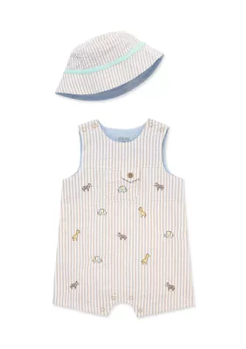 Perfect for your little animal lover, Little Me's baby boy's safari woven cotton sunsuit and matching bucket hat complete this adorable summertime look! Snap closure Striped pattern Imported Material & Care 100% cotton Machine washable