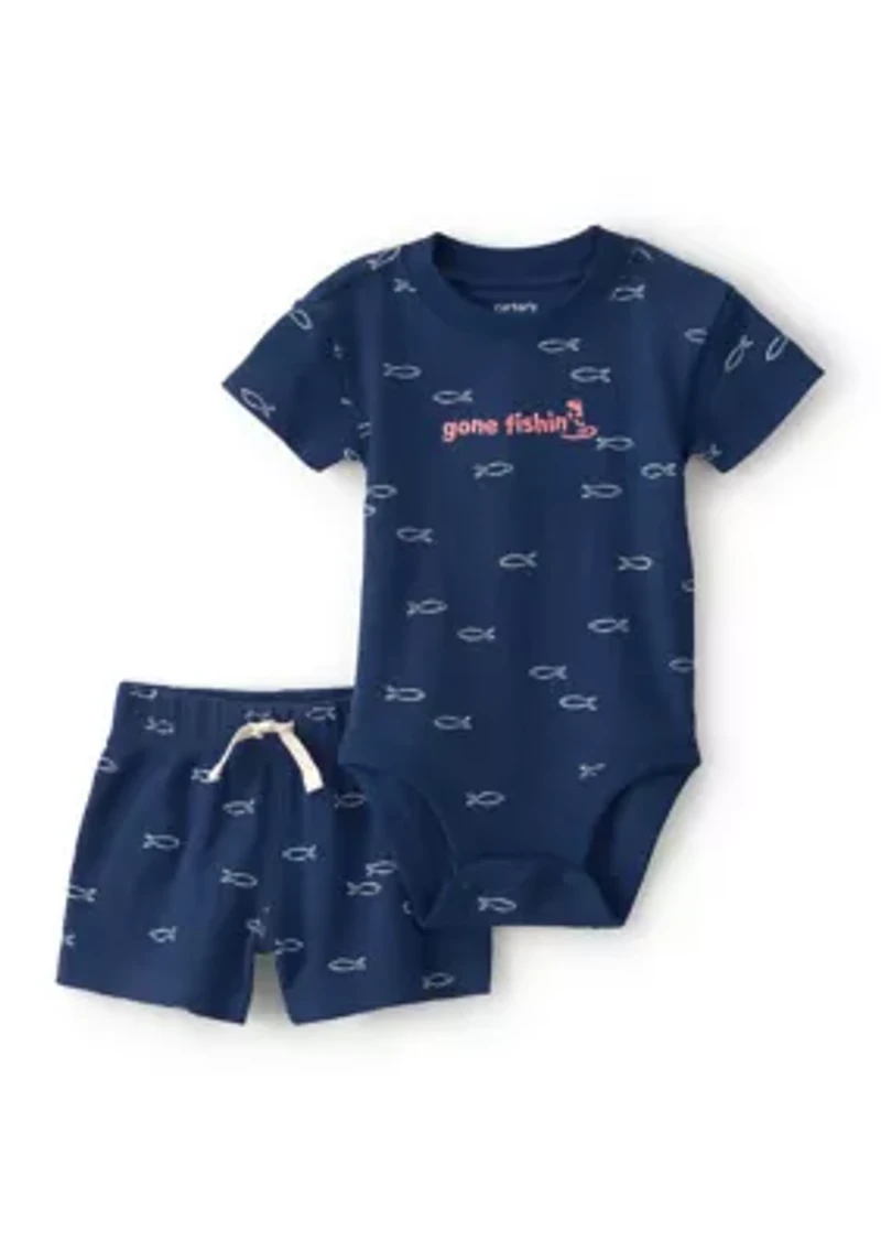 Carter's® soft thermal fabric ensures all-day comfort, and the charming "gone fishing" embroidery adds playful style. Versatile navy fish print is perfect for casual outings. Regular fit allows for easy movement and play. 2-piece set Pullover Crew neck Imported Material & Care Cotton, polyester Machine washable