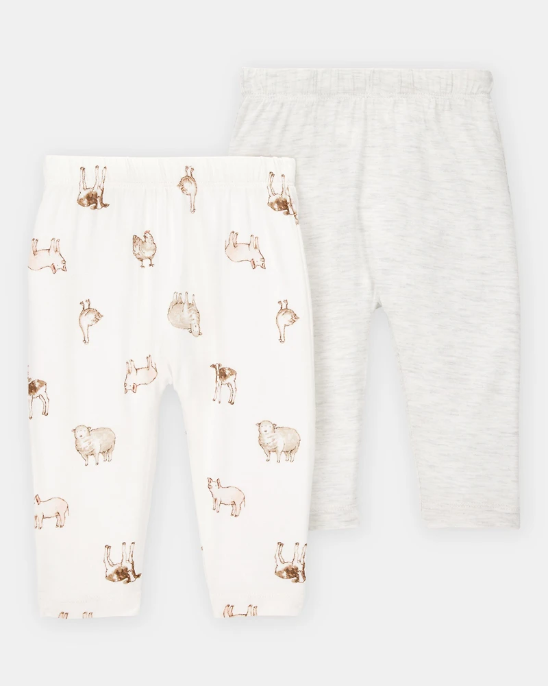 Baby Girl 2-Pack PurelySoft Pull-On Pants - Grey/Ivory