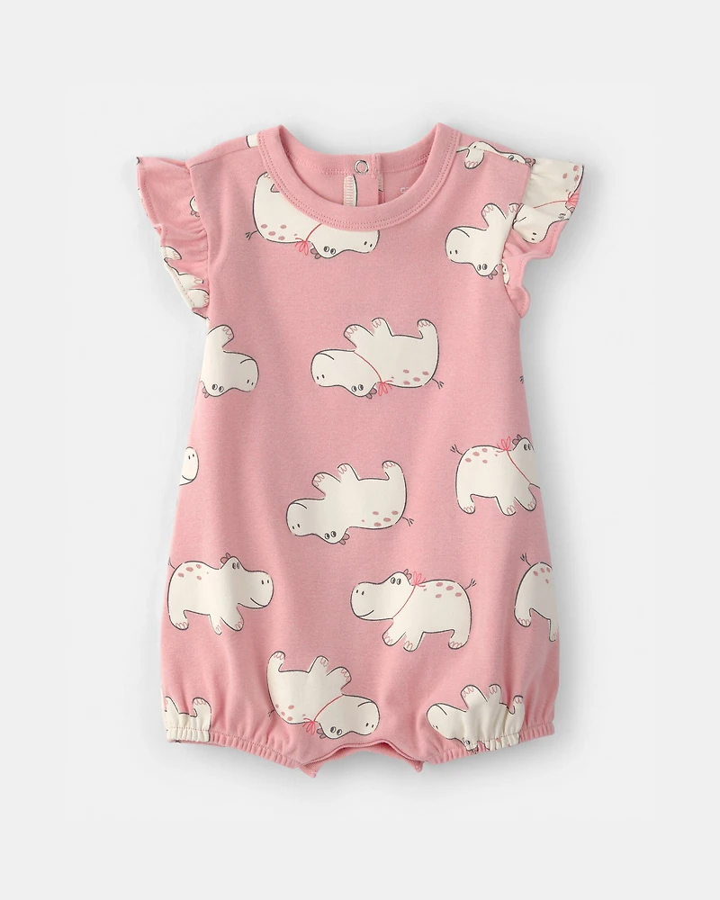 Baby Girl Hippo Short-Sleeve Romper - Pink