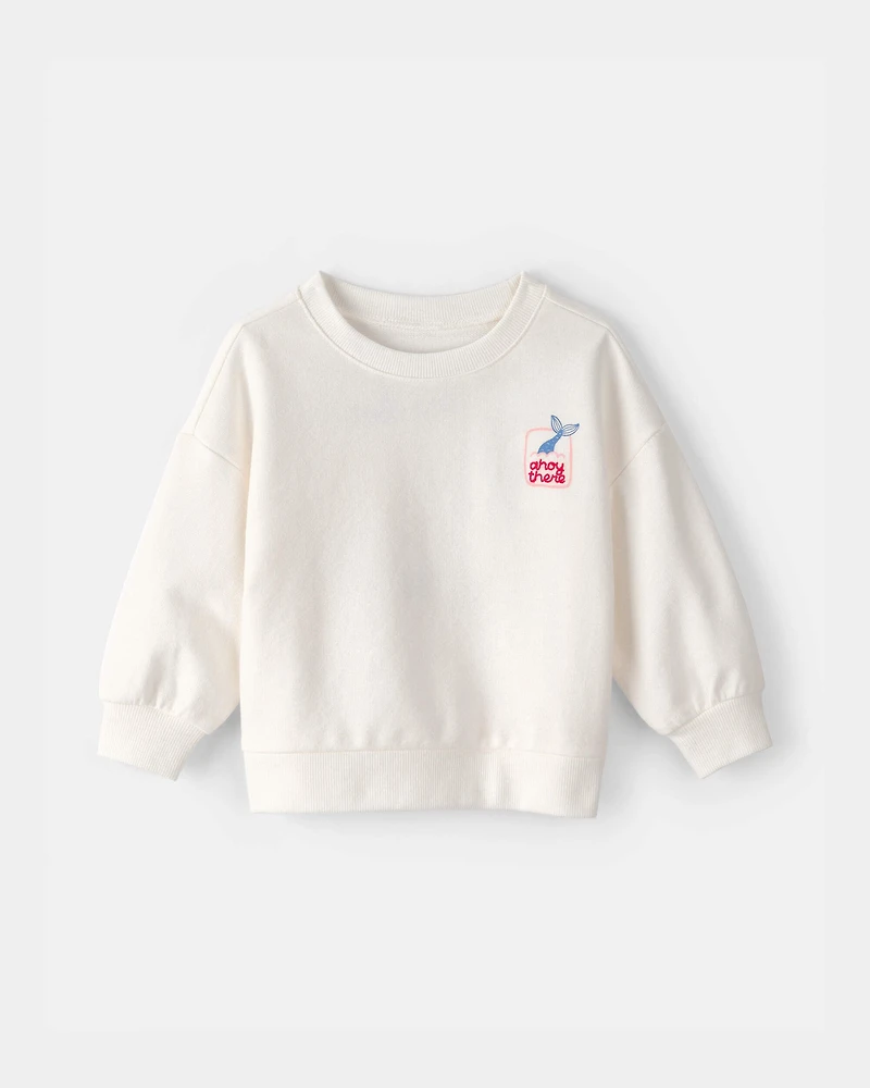 Baby Girl Mermaid French Terry Pullover Sweatshirt - Ivory in Chattanooga, TN