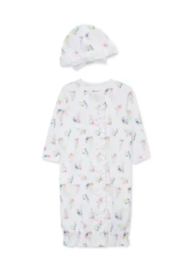 This baby girl's Floral Sleeper Gown from Little Me is made from soft cotton, featuring a sweet floral print, fold-over mitts and a matching hat. Ideal for comfort during sleep and play. 2-piece set Snap closure Imported Material & Care 100% cotton Machine washable