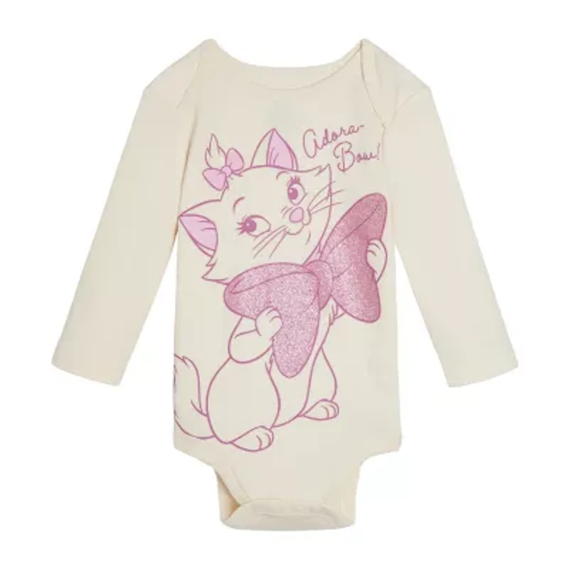 Dress your baby girl in this graphic bodysuit featuring Marie from the iconic Disney movie, AristoCats. It's made from a soft cotton-blend and has a crew neckline, lap shoulders, long sleeves, and a snap-bottom for easy-on-and-off.